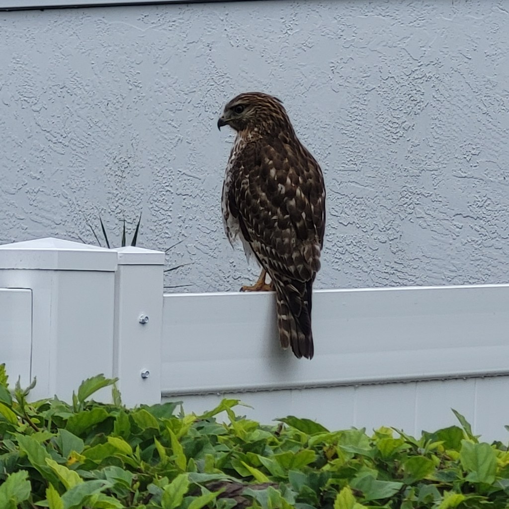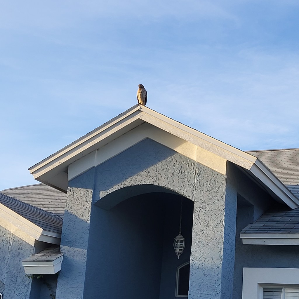 From a Biblical perspective, Google says a hawk is a symbol of Divine guidance…that we are watched from above. It represents clear vision and deep understanding and a keen sense of where it’s going. It arrives to remind you of your inherent right to be free and independent. So, with that in mind, I was delighted to get my three hawk visits yesterday. The hawks stayed a long time while I got “close” and took lots of pictures, The three combined sent me a message, and it was one I needed.
