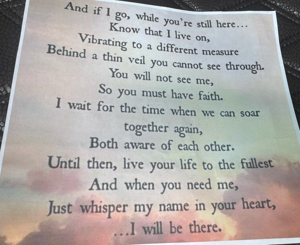 I recently heard this story from a friend of a friend. about the most kind and generous gift of the heart… ever! It turns out that there was a woman (friend of a friend of friends) who walked her dog in a local graveyard and had noticed three graves that had been frequented by the grieving with carefully placed beautiful and meaningful items. She shared her sad experience with her friend who also felt so much sympathy for those whose loss was so obviously painful. What they did still gives me chills and swells my heart. They went to the graveyard together and placed a copy of my book (You Don’t Know Jack!: How Antics from My Late Husband’s Spirit Give Undeniable Evidence of Afterlife) at each of those three gravesites with the poem above (Ascension by Colleen Hitchcock) and a heartfelt message: “Here’s a little gift for you. May it help you with your grief as it helped me. Watch for the signs..xoxo.”