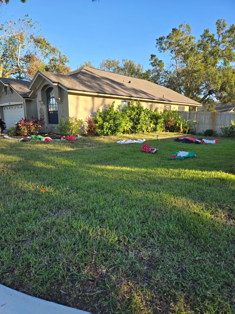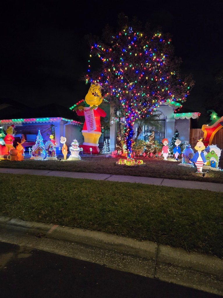 I go out walking every day and always see the deflated Christmas decorations lying on the ground all over my neighbors’ yards. It strikes me so funny. You know, when you really look at them, don’t they actually look dead? Lol. Then, last night I rode around our local neighborhoods with a friend to see them all inflated and mixed with festive lights, and what a delightful ride! I loved that so many people felt so inspired to please others, and were so generous with their time, energy, and money to put on these amazing shows. We really needed this joyful positivity and happy spirit this year. Thank you to everyone for spreading the holiday cheer!