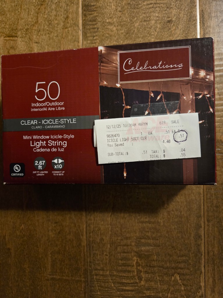 After brunch, I went into the hardware store to get a string of outdoor lights to replace a bad string at home. I found a box on a shelf marked $19.99 and took them to the register. The woman who rang me up said that will be 51 cents. I just looked at her with surprise and said, “Beg your pardon?” She repeated it, and we both laughed. How was that even possible?