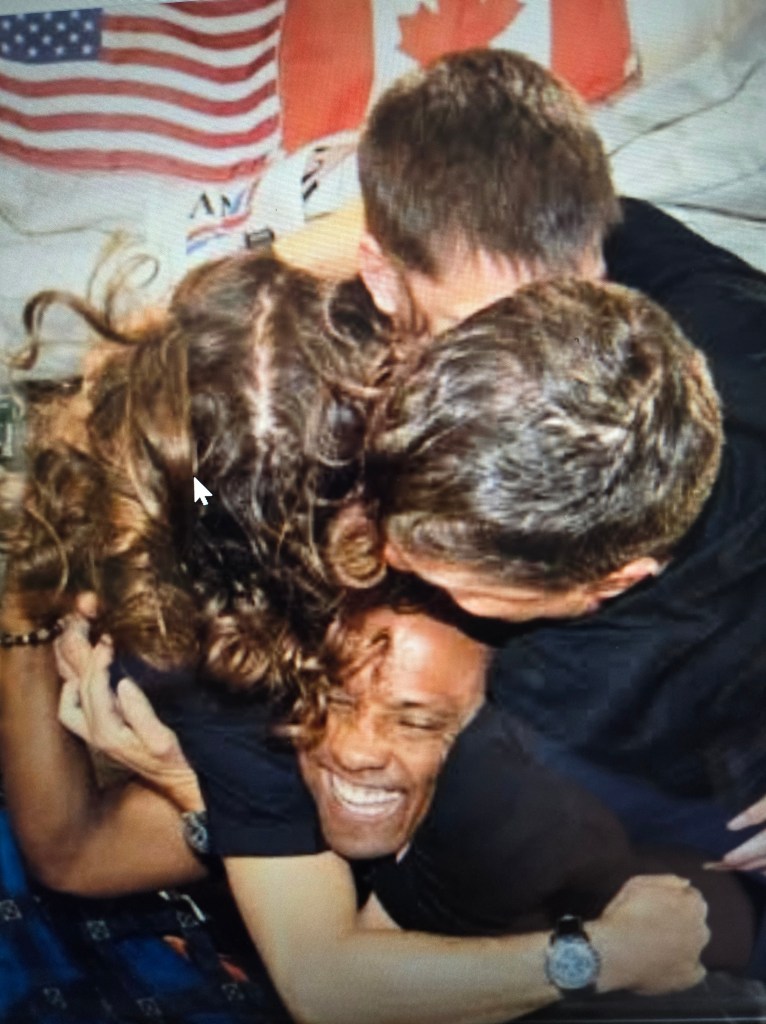 Last week I met with a group of seniors and we discussed how important it was for all of us to feel human connection and how healthy it feels. This morning, I saw the Artemis II crew in a triumphant hug on Facebook! It looked so warm, celebratory, and bonding. And this afternoon, I welcomed a former student to my home (who I hadn’t seen in over 30 years), and we hugged over and over feeling so conneccted after all this time. I got to thinking about the importance of that human connection in general. Most people are totally unaware of the power of human contact for human wellness – both physical and mental. Just a human touch of kindness (a pat on the back, a held hand, a hand on your arm) sends a message to the brain from our tactile system which is highly differentiated to discern types of touch. The skin itself is a giant sensory organ filled with nerve endings (like the C-tactile fibers). Even before birth, the first sense we develop will act as our most important survival system in this world, regulating breathing, temperature and the heart. Stories about babies neglected in orphanages dying from lack of contact are not new. In fact all humans are wired to respond to touch as one of safety and connection, or one of danger.